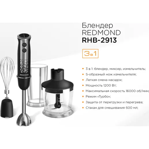 Описание лота: "Блендер REDMOND RHB-2913, Черный"