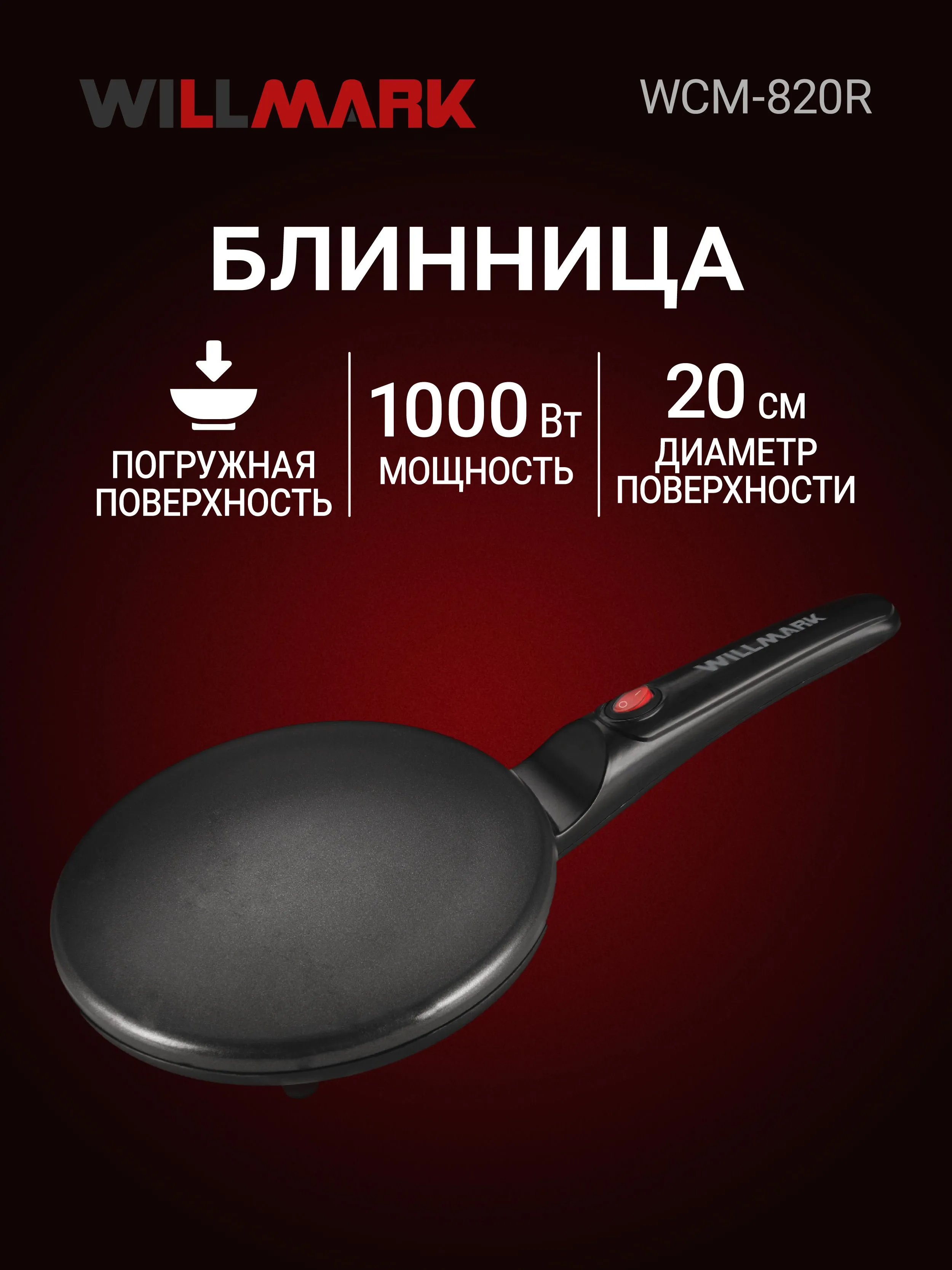 Описание лота: "Блинница WILLMARK WCM-820R (1000Вт, погружная, диаметр - 20см, защита"