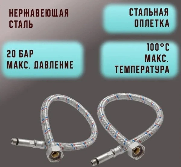Описание лота: "Гибкая подводка для смесителей VALFEX нерж.сталь М10*18-1/2" 80 см (50"