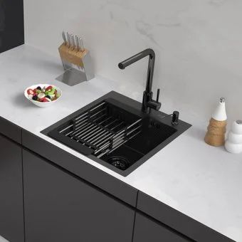 Комплект ASTRA мойка 450*500, коландер, дозатор BLACK DECOR