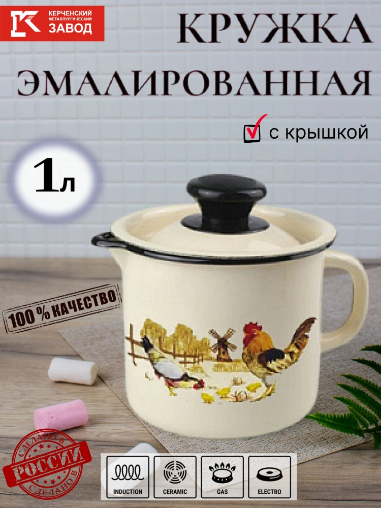 Описание лота: "Кружка эмал с носиком с крышкой 1л (корич./корич.) Царица полей, РОССИ"
