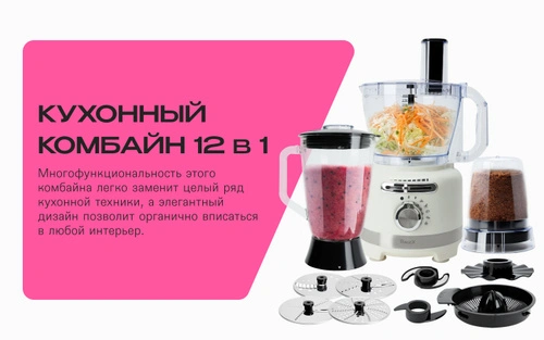 Кухонный комбайн 12 в 1 RAGEX R108, 3л, 1000Вт, цвем: 105 (зефирный),