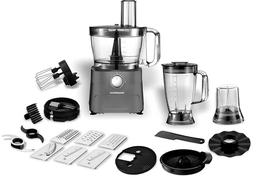 Кухонный комбайн NORMANN AFP-971 — это мощное и многофункциональное устройство, которое станет незаменимым помощником на кухне. Он оснащен двигателем мощностью 1300 Вт и объемной чашей на 2 литра.