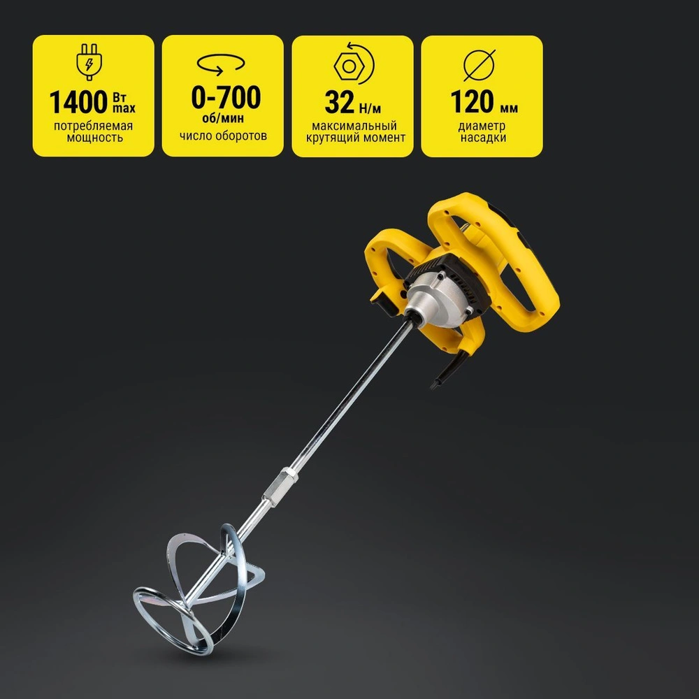 Миксер строительный, 1400Вт, максимальный момент 32Нм, Kolner KEM 120/