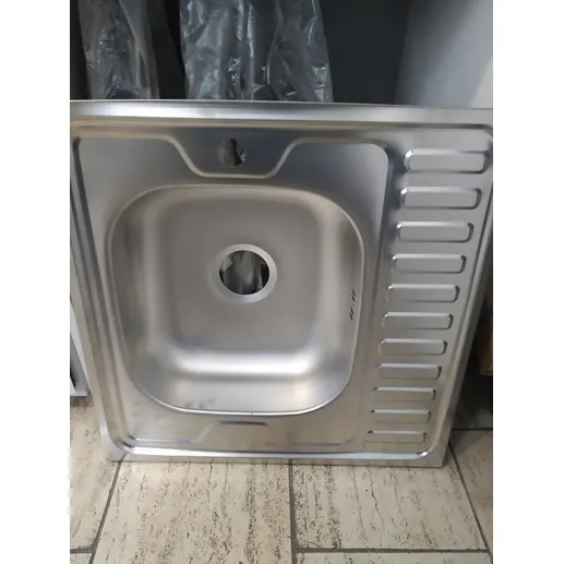 Мойка из нержавеющей стали, накладная, без сифона. 60*60 см. Глубина чаши 16,5 см. Турция. Дефекты покрытия, мелкая дырочка.
