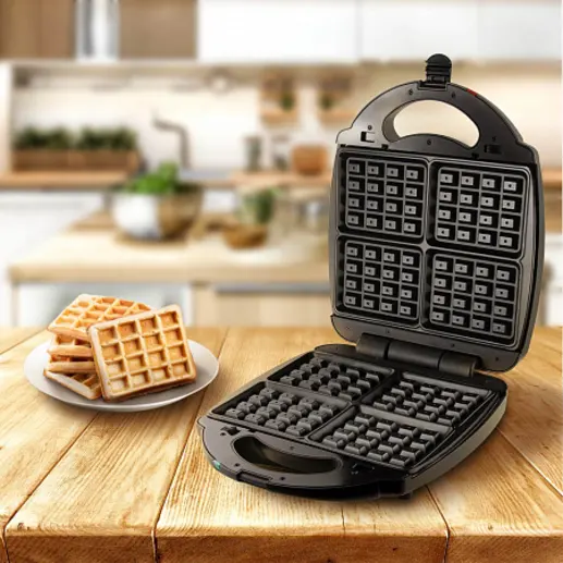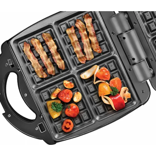 Площадь панелей RMB-M713/1 – 23 × 28 см. Благодаря увеличенному размеру пресс-форм, за один раз в RMB-M713/1 можно сделать сразу 4 венские вафли, 8 сырников или 2–3 порции куриных крылышек. Готовить любимые блюда вы можете без добавления масла – панели мини-пекарни покрыты антипригарным слоем, на котором блюда не подгорают.