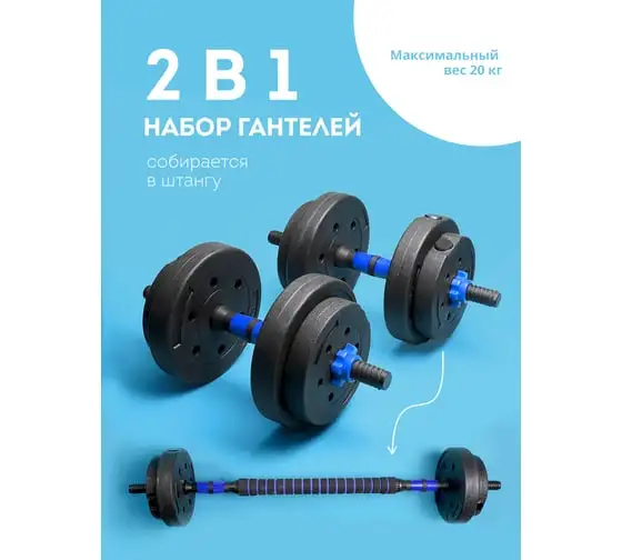 Описание лота: "Набор гантели+штанга Galaxy LINE GL1021, черный с голубым"