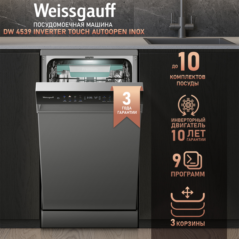 Описание лота: "Посудомоечная машина Weissgauff DW 4539 Inverter Touch AutoOpen White"