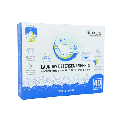 Растворимые листы для стирки белья DUKE'S HOME WONDERS, аромат "Лен",