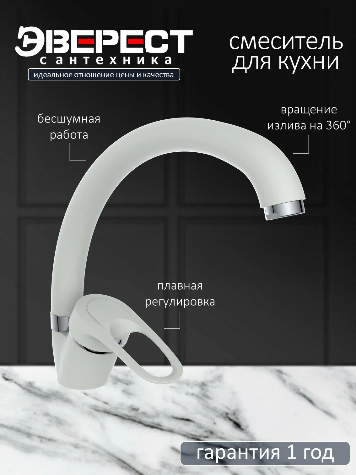 Описание лота: "смеситель Эверест кухня боковой на гайке B59-0257 (белый)"