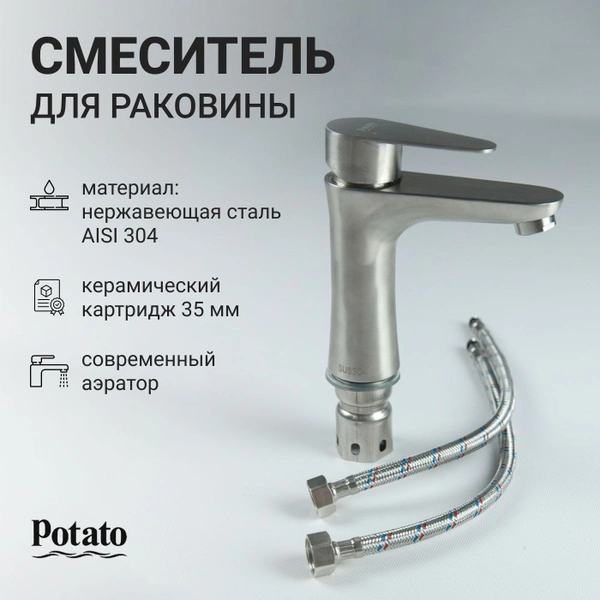Описание лота: "смеситель POTATO нерж, для раковины P10310S"