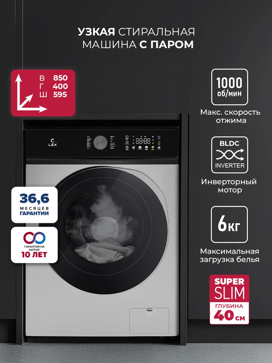 Описание лота: "Стиральная машина LEX LWM06010GRTHID slim"