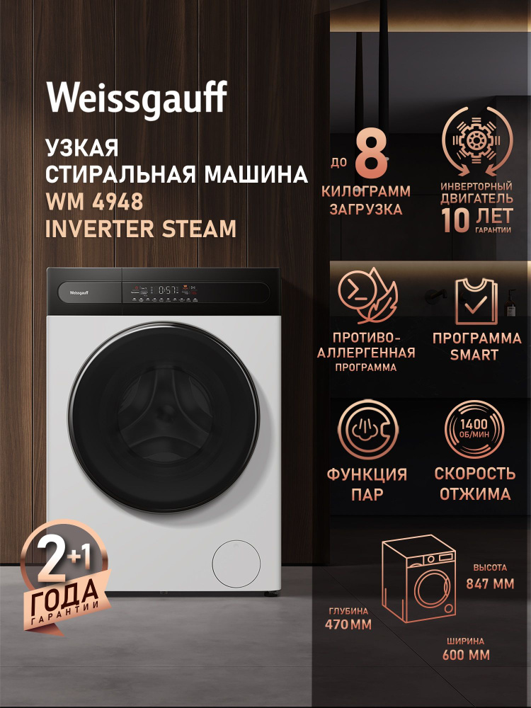 Описание лота: "Стиральная машина Weissgauff WM 4948 Inverter Steam"
