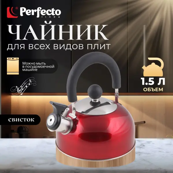 Чайник со свистком, нержавеющая сталь, 1.5 л, серия Holiday, красный м