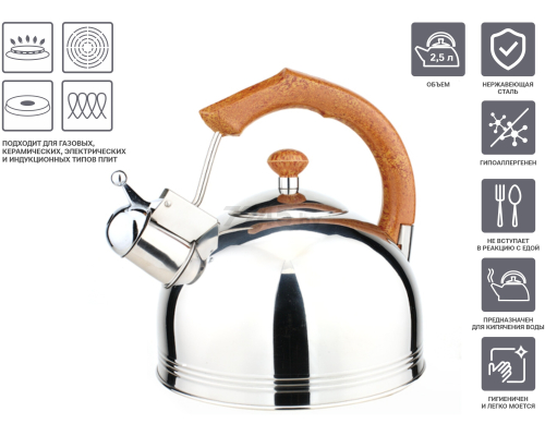 Описание лота: "Чайник со свистком, нержавеющая сталь, 2.5 л, Kenyan Sunrise, PERFECTO"