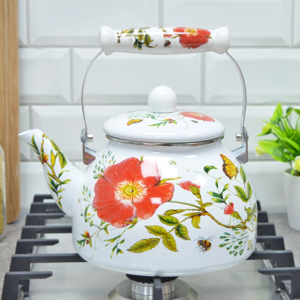 Чайник эмал 2,5л Дикая роза ТМ Appetite, КИТАЙ