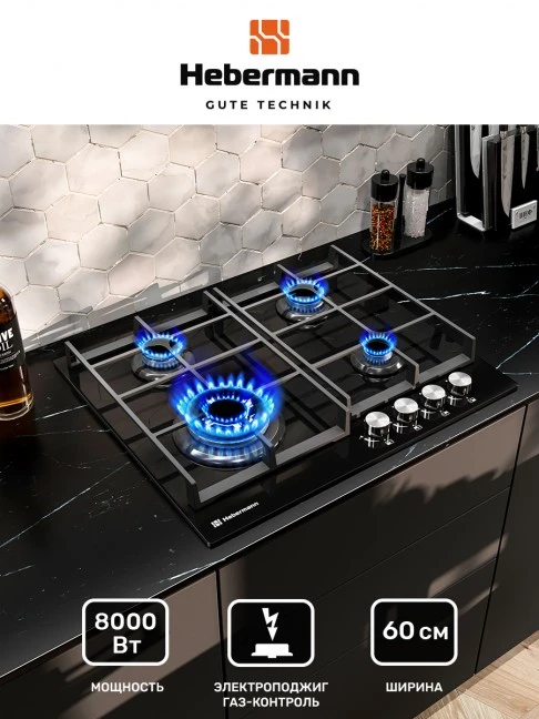 Описание лота: "HEBERMANN HBGG 604.1 B панель газовая"