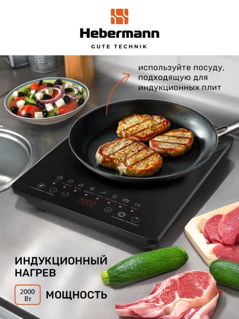 Описание лота: "HEBERMANN HBIC 1102 настольная индукционная плитка, однокомфорочная, с"